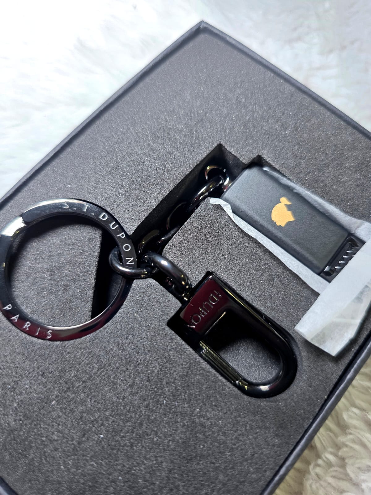 S.T. Dupont Behike Double Puncher, um furador de charutos duplo que tambΓ©m funciona como chaveiro. Este acessΓ³rio de luxo celebra o 15ΒΊ aniversΓ‘rio da linha Behike da Cohiba, uma famosa marca de charutos cubanos.